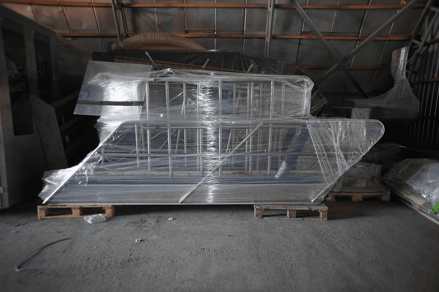 - Узел перемещения группы в г/лоток. Отправляет с предварительного мата группу из 6 пакетов в гофрокороб.