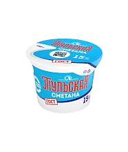 Сметана «Тульская» 15% жирности является натуральным продуктом, изготавливаемым исключительно путём естественного сквашивания только отборных сливок, что обеспечивает его высокое качество.